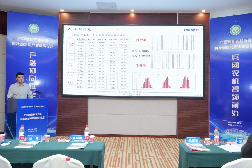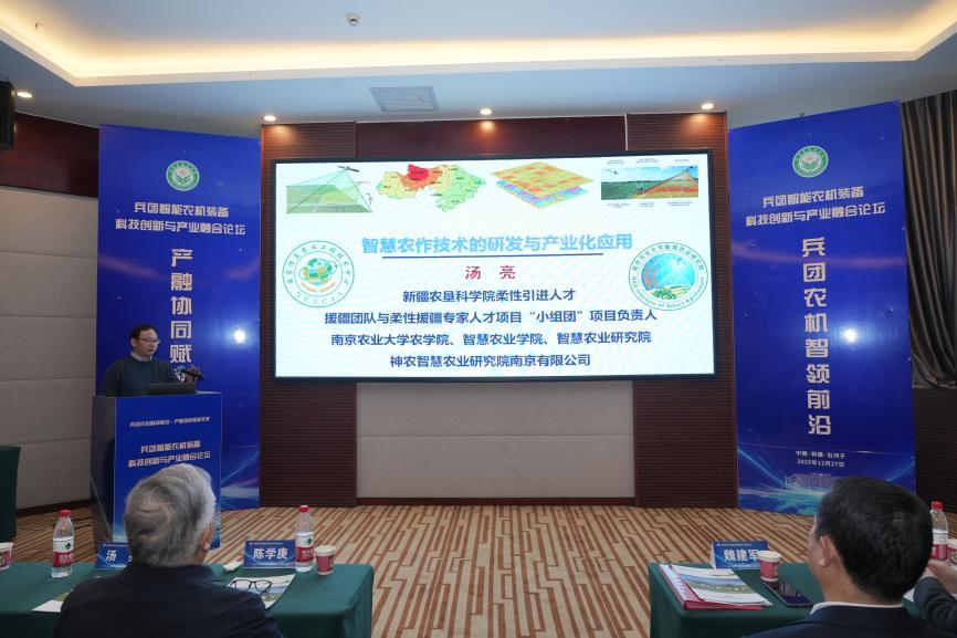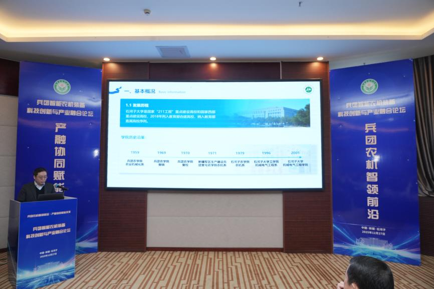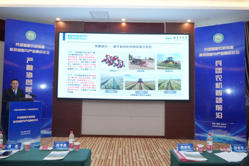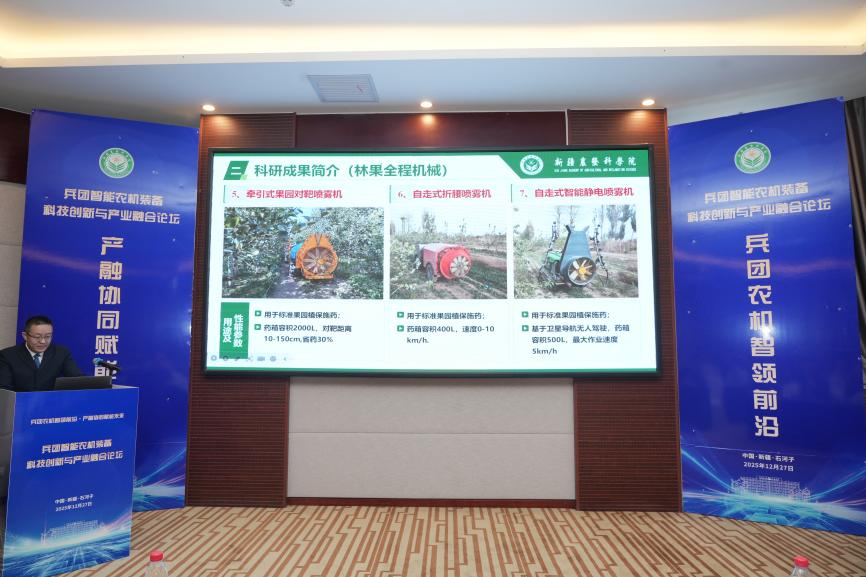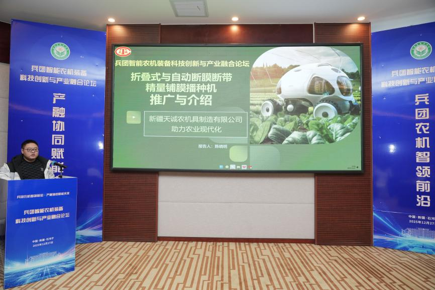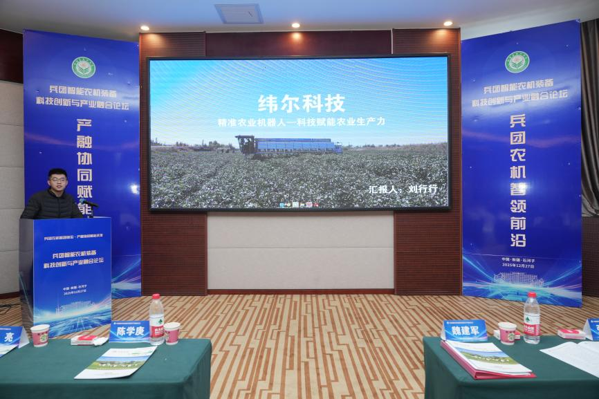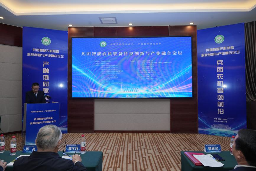 12月26日至27日,由新疆生产建设兵团科协、科学技术局指导,新疆农垦科学院主办,新疆农垦科学院机械装备研究所、智慧农业研究所、科技信息研究所等科研机构联合承办,新疆天诚农机具制造有限公司、黑龙江德沃科技开发有限公司(新疆德沃智能农业装备有限公司)、觉物智能装备(石河子)有限公司等多家疆内外农机企业联合协办的“兵团智能农机装备科技创新与产业融合论坛”在石河子市成功举办。论坛聚焦智能农机装备创新与产业融合发展,通过主题报告、企业推介、实地调研与座谈研讨等形式,为兵团农业机械化、智能化发展凝聚智慧、探索路径。