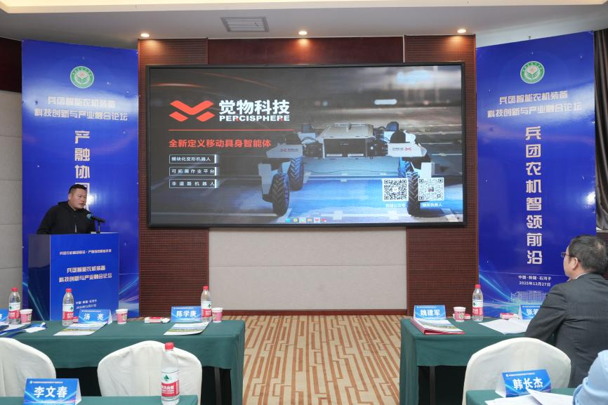 随后,新疆天诚农机具制造有限公司、黑龙江德沃科技开发有限公司(新疆德沃智能农业装备有限公司)、新疆纬尔农业科技有限公司、觉物智能装备(石河子)有限公司、石河子市天山机械制造有限公司等企业代表依次登台,推介了涵盖电驱播种、棉花打顶机器人、智能除草装备、模块化变形机器人等一系列创新产品,凸显了“产学研用”协同推进智能农机落地应用的积极态势。