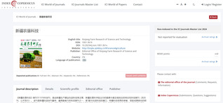 近日,《新疆农垦科技》正式被波兰ICI World of Journals(哥白尼索引数据库) 收...