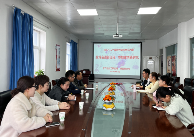 为庆祝第 115 个 “三八” 国际劳动妇女节,丰富女职工的精神文化生活,增强团队凝聚力,3月7日上午,林园所与加工所联合举办了一场以 “跟党奋进新征程・巾帼建功新时代” 为主题的庆祝活动。活动在加工所会议室开展,由加工所工会副主席王楠斌主持,林园所副所长李鹏程及两所全体工会委员和女职工参加了此次活动。
