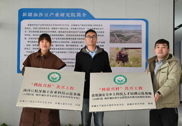 为贯彻落实自治区科技厅及兵团科技局关于《南疆兵团连队与邻近村结对共建“科技兴村”共兴工程实施方案》(新科农﹝2022﹞148号)等文件精神的要求,按照院党委对连村共建工作的安排部署,确保“科技兴村”共兴工程工作落到实地,充分发挥科技服务支撑产业发展作用,助力连村共建,加强兵地融合。2025年1月6-8日,新疆农垦科学院农产品加工研究所副所长贾文婷副研究员、王霆助理研究员赴第三师54团开展“连村共建 科技兴村”和“三区”科技人才服务工作示范基地培训与授牌活动。